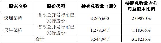 公司股东深圳市架桥富凯股权投资企业(有限合伙)(简称“深圳架桥”,持股比例2.09870%)及其一致行动人天津架桥富凯股权投资基金合伙企业(有限合伙)(简称“天津架桥”,持股比例1.18365%)合计持有3,544,947股的公司股份(占公司总股本比例3.28236%),全部为首次公开发行前已发行股份,其本次计划以集中竞价、大宗交易方式减持公司股份合计不超过3,240,000股,占公司总股本比例不超过3%。本次减持原因系自身资金需求。