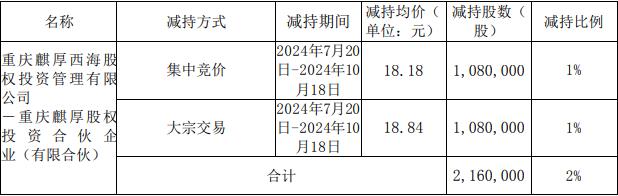 2024年10月22日,公司披露《关于北京嘉曼服饰股份有限公司特定股东减持计划实施完成的公告》,公司于2024年7月16日披露公告,公司持股3.01%的股东重庆麒厚计划自减持计划公告之日起3个交易日之后3个月内以集中竞价交易方式或大宗交易的方式合计减持公司股份数量不超过2,160,000股,即不超过公司总股本的2%。近日公司收到重庆麒厚告知函,重庆麒厚通过集中竞价交易方式累计减持公司股份1,080,000股,通过大宗交易方式累计减持公司股份1,080,000股,减持计划已实施完毕。