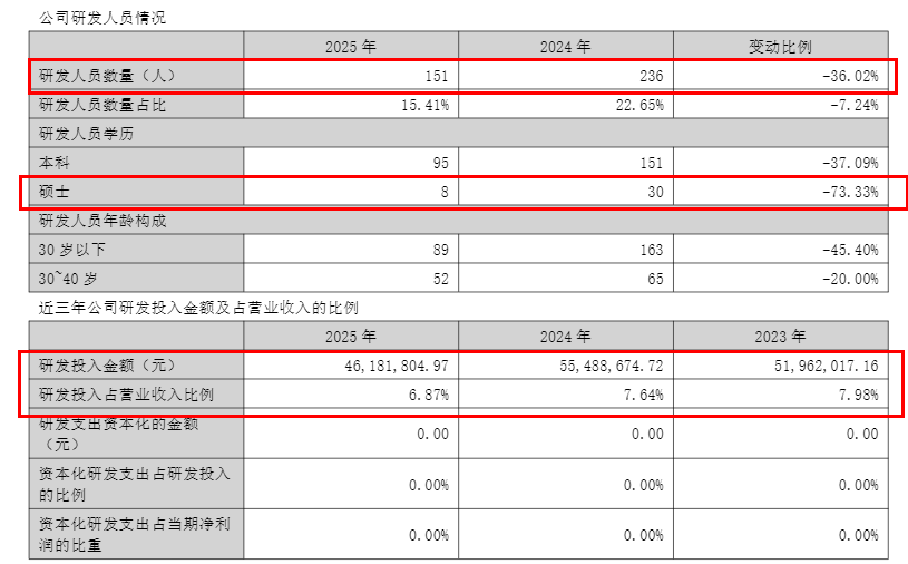 研发投入减少16.8%,硕士研发人员锐减至8人
