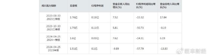 2023年年报显示,金道科技总营收为1.51亿,归母净利润为0.1亿元,营收总收入同比增长-9.89%,归属净利润同比增长-57.79%。