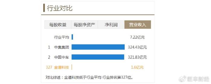 从营业收入方面来看,金道科技低于行业平均,行业排名第328位。