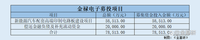 上市期间,金禄电子拟募集资金总额7.85亿元,投资于“新能源汽车配套高端印制电路板建设项目”及“补充流动资金”。