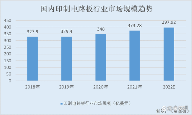 国内印制电路板行业市场规模由2018年的327.9亿美元增长至2021年的373.28亿美元,年均复合增长率为3.9%。同时,2022年国内印制电路板行业市场规模将达397.92亿美元。大部分世界知名PCB企业已在国内投资设厂,由此形成了国内本土企业与跨国PCB企业互相竞争、共同发展的格局。