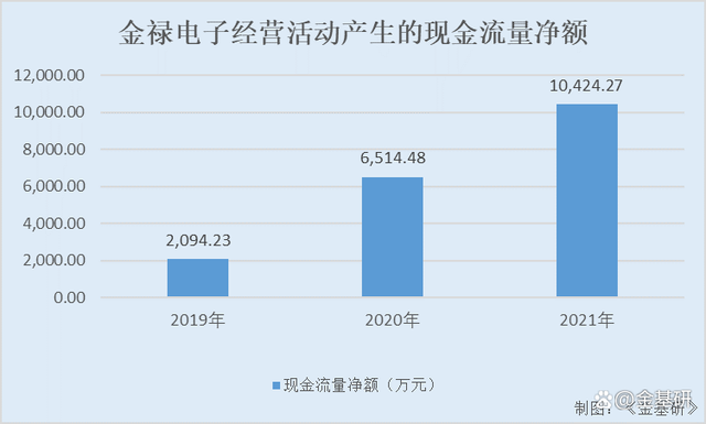 2019-2021年,金禄电子经营活动产生的现金流量净额分别为2,094.23万元、6,514.48万元、10,424.27万元,金禄电子经营活动现金流充足。