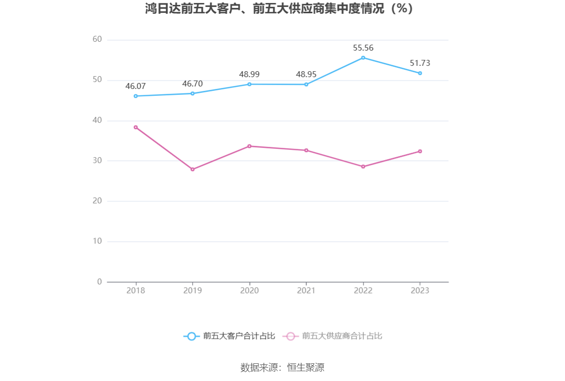 报告期内,公司前五大客户合计销售金额3.73亿元,占总销售金额比例为51.73%,公司前五名供应商合计采购金额1.87亿元,占年度采购总额比例为32.39%。