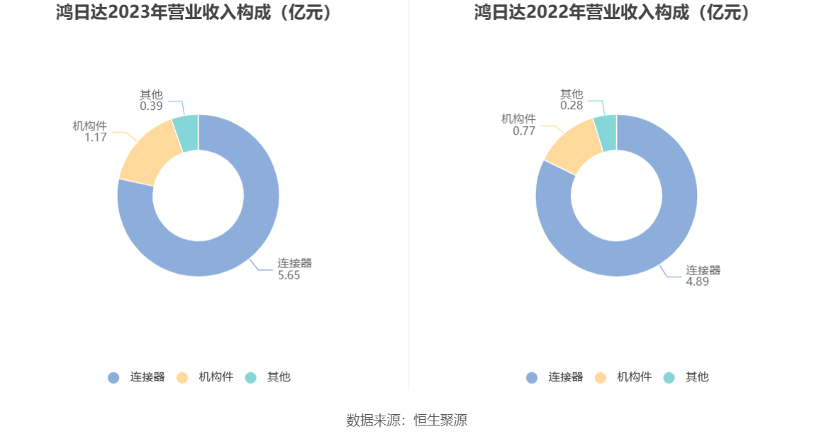 分产品看,连接器、机构件2023年毛利率分别为15.89%、40.67%。