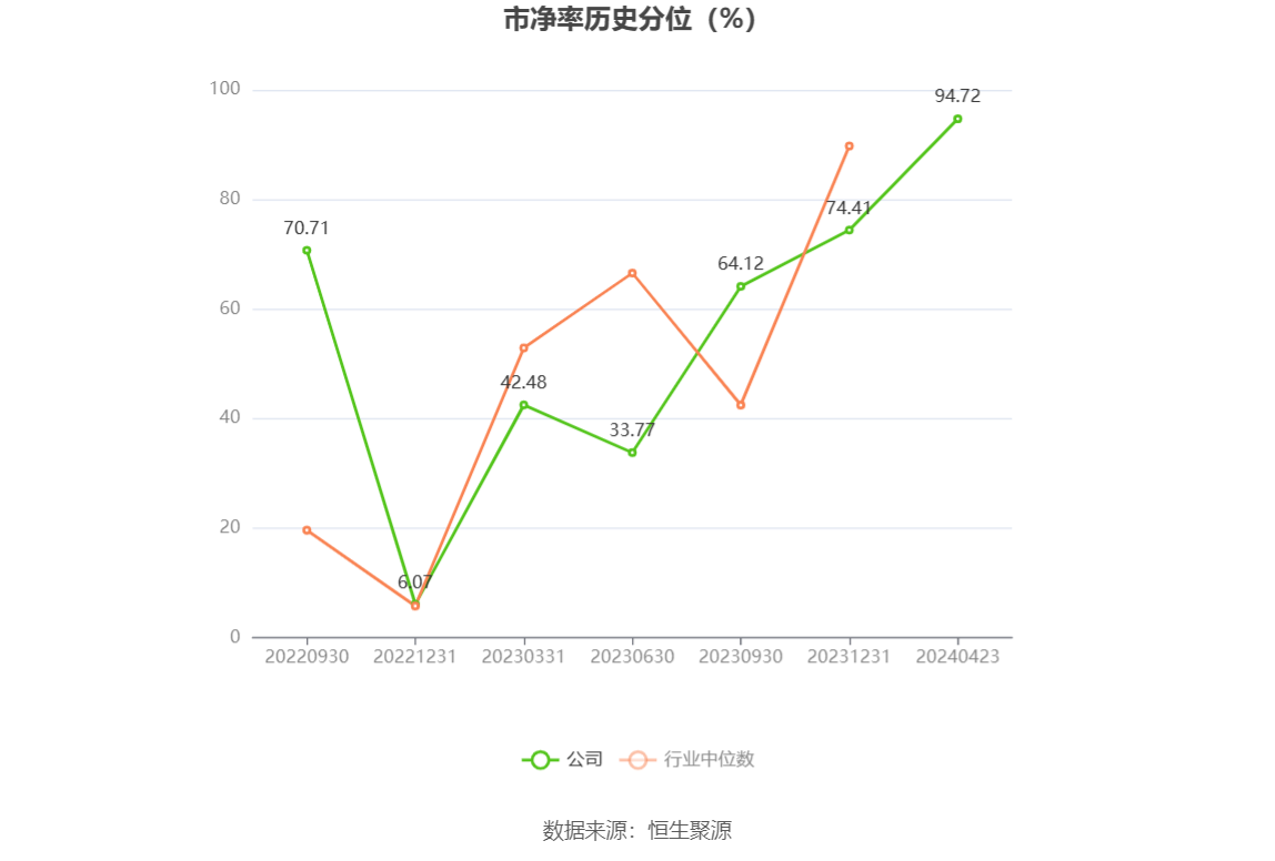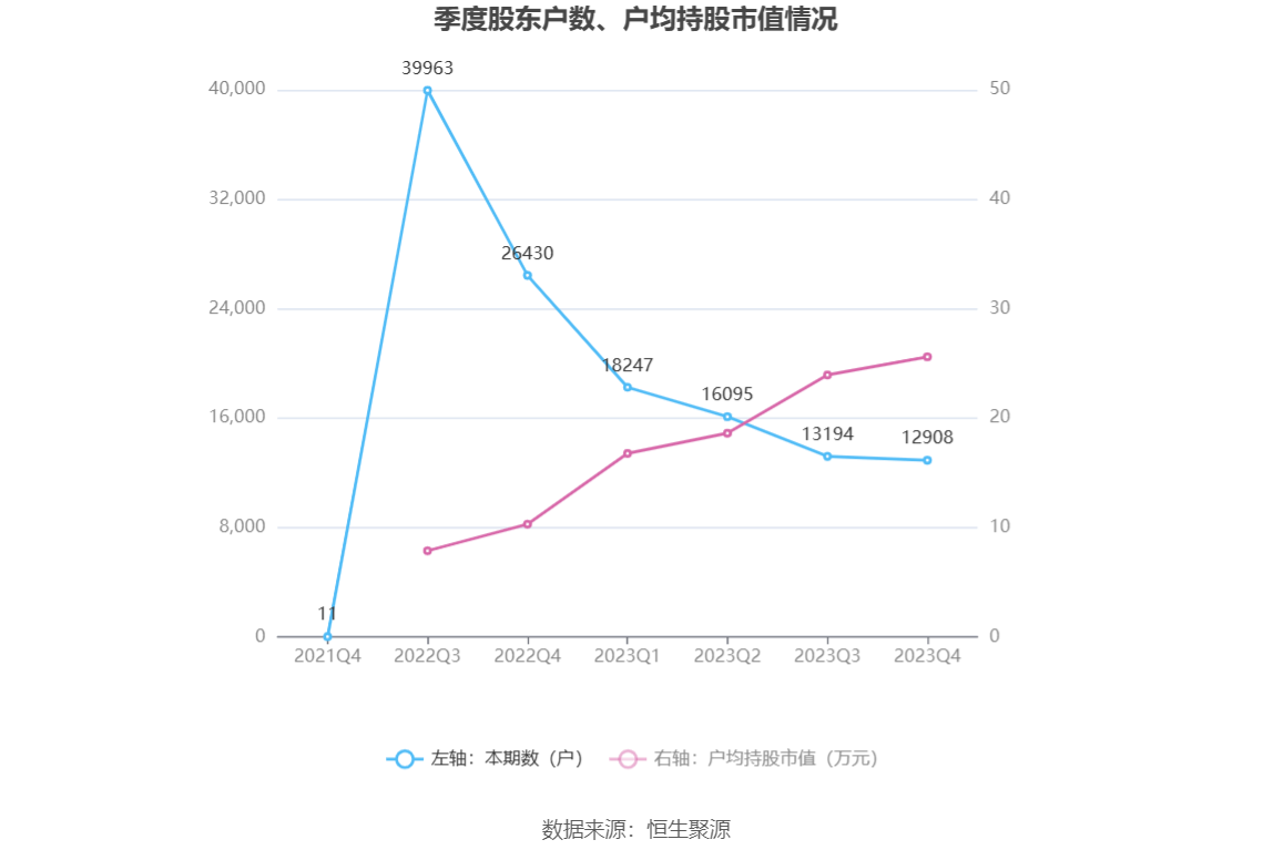 筹码集中度方面,截至2023年年末,公司股东总户数为1.29万户,较三季度末下降了286户,降幅2.17%;户均持股市值由三季度末的23.93万元上升至25.59万元,增幅为6.94%。