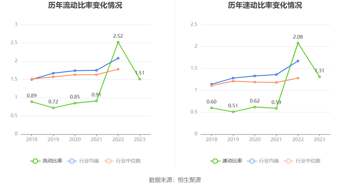 2023年,公司流动比率为1.51,速动比率为1.31。