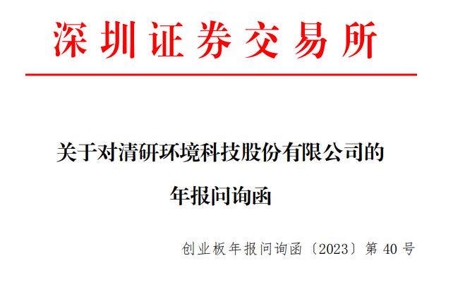 20日,深交所向清研环境下发问询函,要求其说明主要客户及供应商是否存在向公司输送利益或其它利益安排。