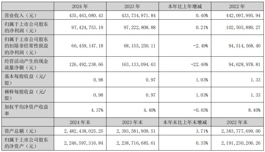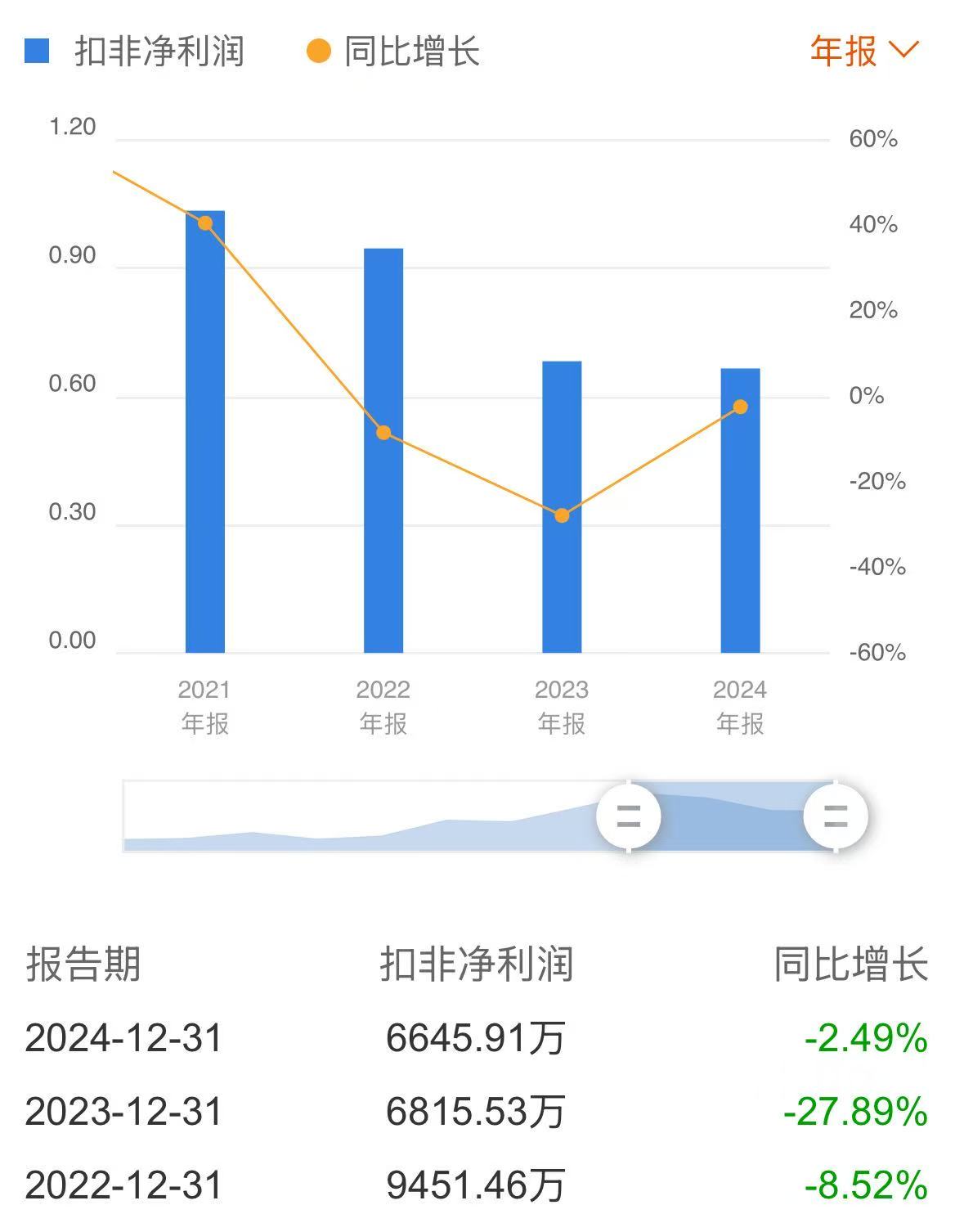 2024年,公司营业收入约4.35亿元,同比增加0.4%;归母净利润约9742万元,同比增加0.21%。虽然东星医疗的营收净利得到微小的增长,但其扣非净利仍然下滑,已连续三年下滑。