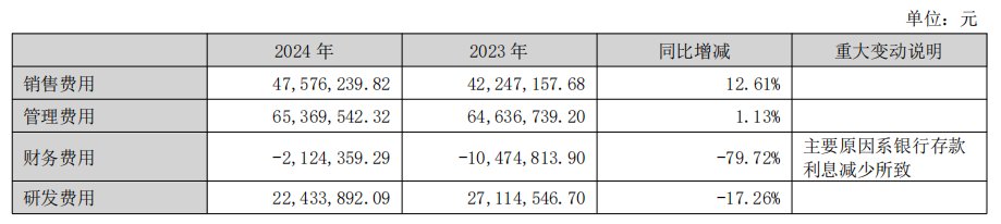 2024年,东星医疗的销售费用同比增加了12.61%,研发费用则同比减少了17.26%。