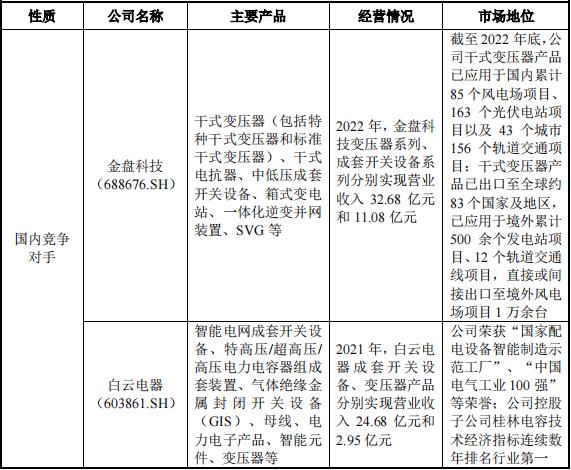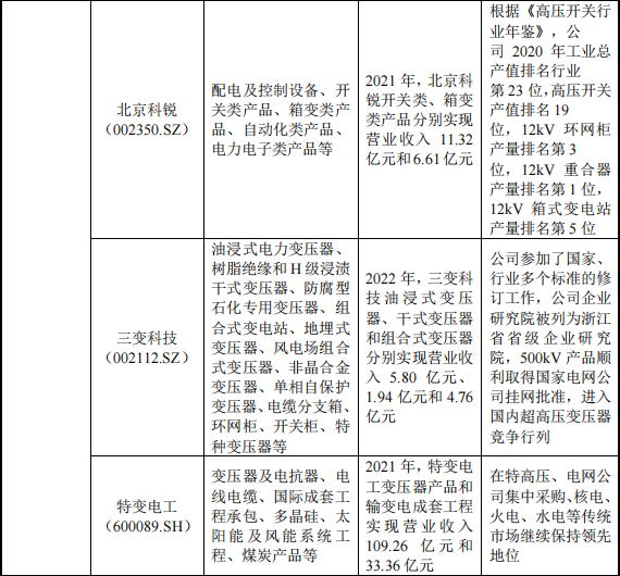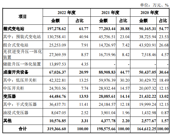公司主要从事应用于新能源、新型基础设施等领域的输配电及控制设备的研发、生产和销售,主要产品为箱式变电站、成套开关设备和变压器。公司是国内研发制造输配电及控制设备的骨干企业和广东省新能源电气装备领军企业,公司致力于成为行业领先的智能化输配电及控制设备整体解决方案提供商。