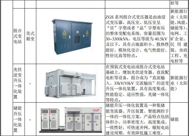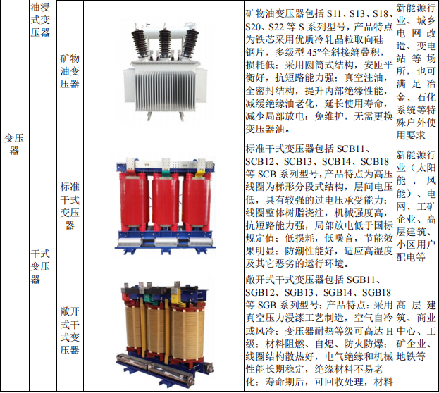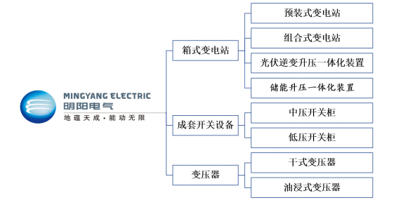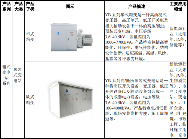 公司主要产品包括箱式变电站、成套开关设备和变压器,分类示意图如下: