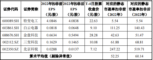 46.36 倍(每股收益按照 2022 年度经会计师事务所依据中国会计准则审计的扣除非经常性损益后归属于母公司股东净利润除以本次发行后总股本计算);