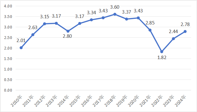 在此期间,2022年净利润最低,为1.82亿元;其余年份全部在2亿元以上,2018年最高达到3.60亿元。