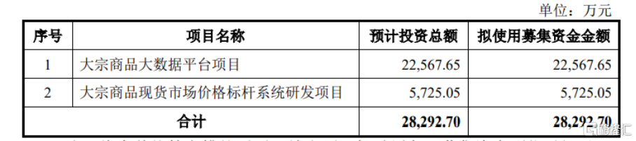 本次IPO拟募资2.83亿元,主要用于大宗商品大数据平台项目、大宗商品现货市场价格标杆系统研发项目。
