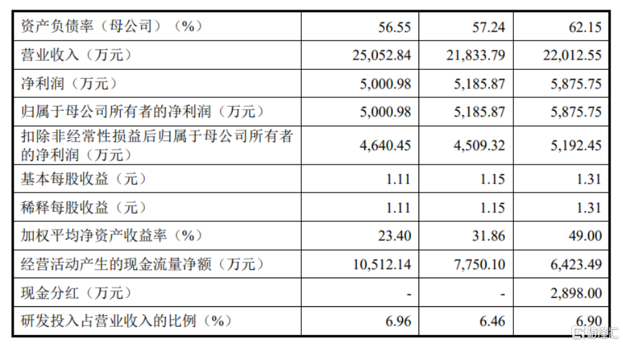 报告期内,卓创资讯实现营业收入分别为2.20亿元、2.18亿元、2.51亿元;归属于母公司所有者的净利润分别为5875.75万元、5185.87万元、5000.98万元,出现了下滑趋势。