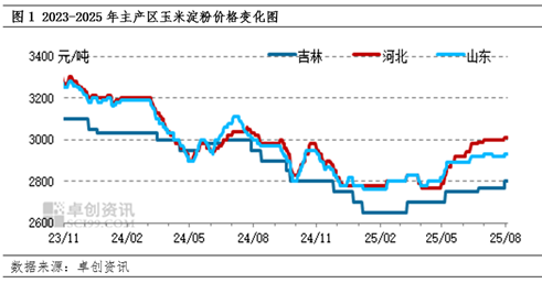 近期国内玉米淀粉现货市场价格整体偏强运行,市场成交重心缓慢上移。由于原料玉米上货量低位运行,主要深加工企业上调收购价格刺激玉米上货量,原料成本支撑力度逐步增强,主要企业陆续上调玉米淀粉出厂价格转嫁成本压力,提涨之后市场高价走货一般。市场整体购销气氛较前期有所好转,下游终端与贸易商采购积极性增加。据卓创资讯数据显示,截止到8月4日,山东地区现货市场价格在2900-2980元/吨,均价上涨20元/吨。河北地区玉米淀粉现货市场价格在2940-3020元/吨,均价上涨10元/吨。黑龙江地区现货市场价格在2630-2740元/吨,均价上涨10元/吨。