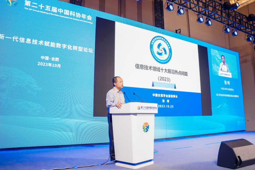 开幕式上,张柯副理事长代表中国科协信息科技学会联合体发布了《2023年信息科技领域前沿热点问题》。他以深入浅出的语言向在场的听众讲述了当前信息技术领域包括工业互联网、卫星网络通信、自动驾驶安全性等在内的信息科技领域的十大前沿热点问题,引起了广大科技工作者的一致共鸣。