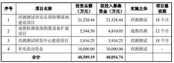 西测测试本次发行募集资金总额为91,215.30万元,募集资金净额为80,881.77万元。西测测试最终募集资金净额比原计划多40827.03万元。该公司于2022年7月21日披露的招股书显示,公司拟募集资金40,054.74万元,分别用于西测测试西安总部检测基地建设项目、成都检测基地购置设备扩建项目、西测测试研发中心建设项目、补充流动资金。