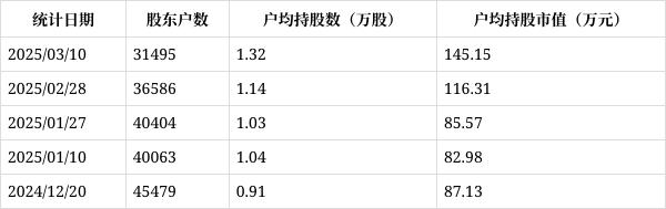 从3月12日公开信息显示,江波龙截至2025年3月10日公司股东户数为3.15万户,较上期(2025年2月28日)减少5091户,降幅为13.92%,持股趋于集中。