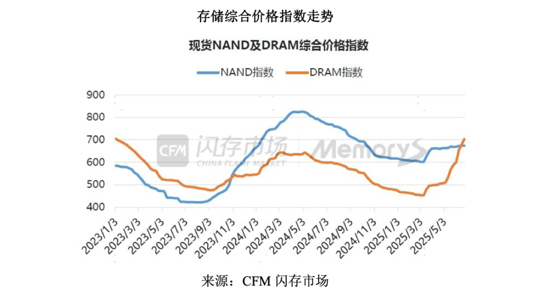 进入3月,随着终端需求出现实质性回暖,下游库存逐步回归健康水平,叠加主要存储原厂执行减产与控货策略,存储供需格局显著改善,带动存储价格见底回升。根据CFM闪存市场数据,2025年上半年,NAND Flash市场综合价格指数上涨9.2%,DRAM市场综合价格指数上涨47.7%。