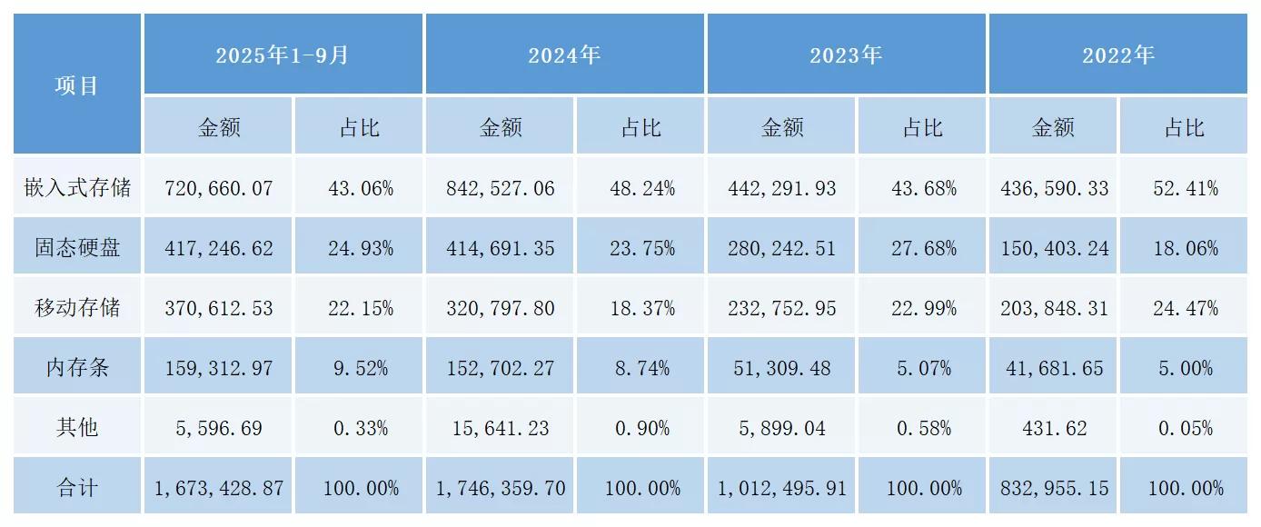 截至2025年9月30日,公司已推出应用于UFS、eMMC、SD卡和车规级USB产品的四个系列多款主控芯片,累计部署量突破1亿颗。其中,搭载自研主控芯片的UFS4.1产品已获得多家Tier1大客户的认可,并且部署规模仍在保持快速增长。