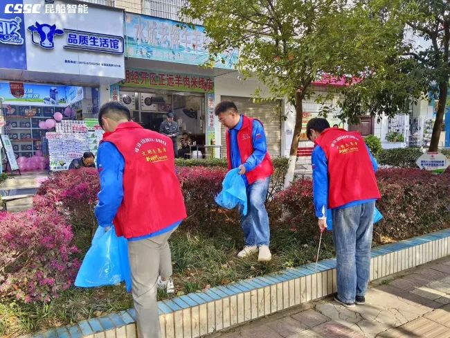 (响应国家卫生城市创建活动,电子电控事业部团委牵头,智能装备事业部团委、智能烟草事业部团委、工程中心团支部配合,为群众服务、美化社区环境。)