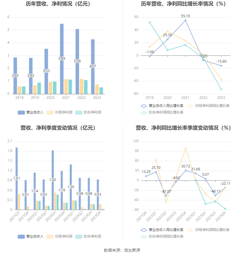 进一步统计发现,2023年公司自由现金流为-5.08亿元,上年同期为0.76亿元。