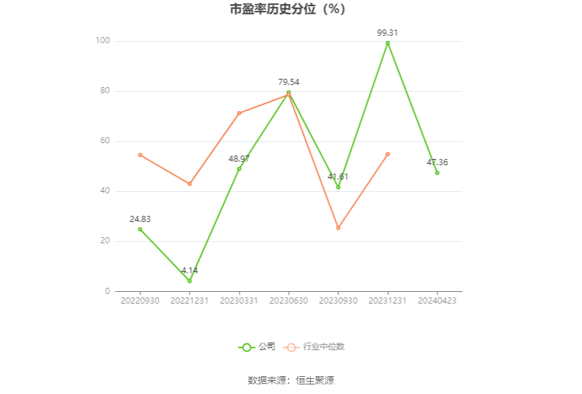 市盈率为负时,不显示当期分位数,会导致折线图中断。