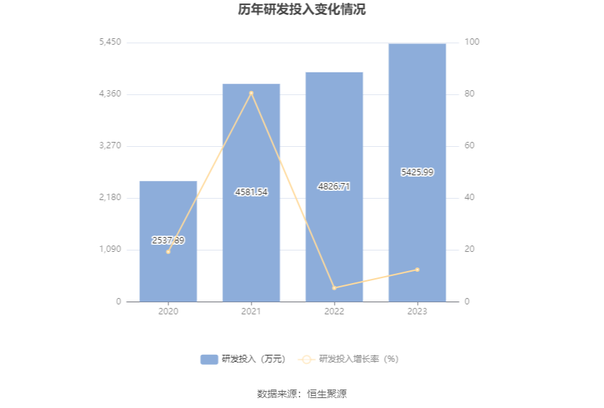 2023年全年,公司研发投入金额为5425.99万元,同比增长12.42%;研发投入占营业收入比例为12.70%,相比上年同期上升3.20个百分点。此外,公司全年研发投入资本化率为0。
