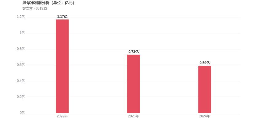 利润角度分析,2022年智立方实现归母净利润1.17亿元,2024年0.59亿元。归母净利润连续两年出现下滑,盈利水平明显收缩。