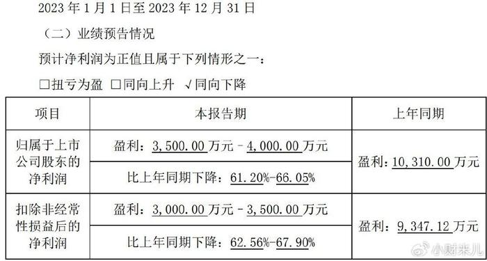 2023年业绩下滑主要系(1)公司核心业务小型磁环线圈绕线服务订单需求减少,相关产品销售数量同比下降;(2)客户成本端面临较大的挑战,同时小型磁环线圈绕线服务行业内部竞争加剧,公司为巩固市场份额调低了部分绕线服务产品价格;(3)公司上市后各项管理费用较上年度有所增加。2023 年公司非经常性损益预计与上年度相比减少,主要系政府补助较上年度有所减少。