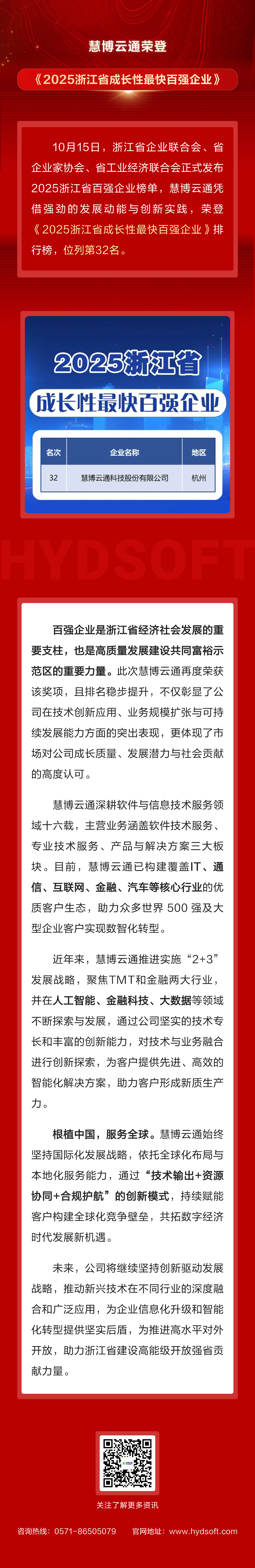 喜报!慧博云通再获2025浙江省成长性最快百强企业