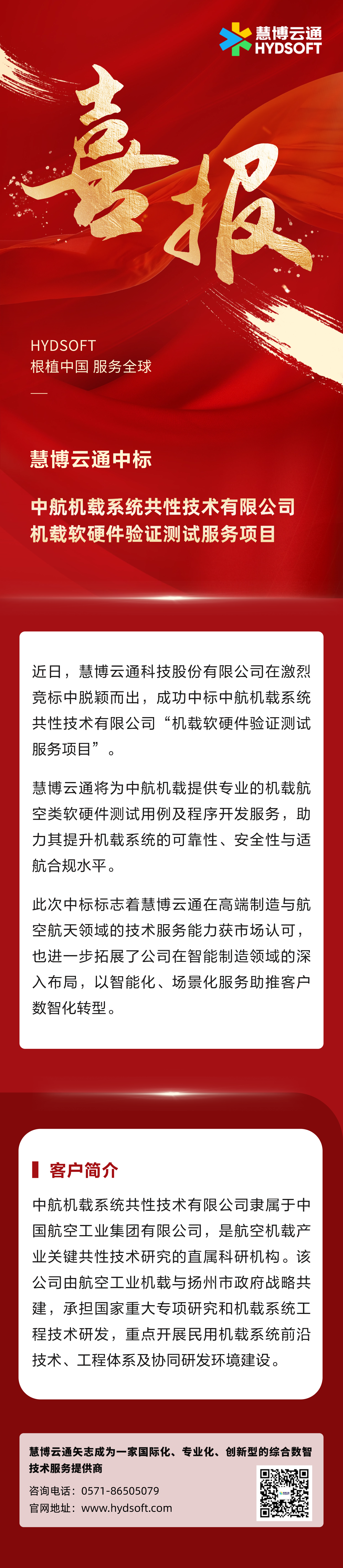 慧博云通成功中标中航机载软硬件验证测试服务项目