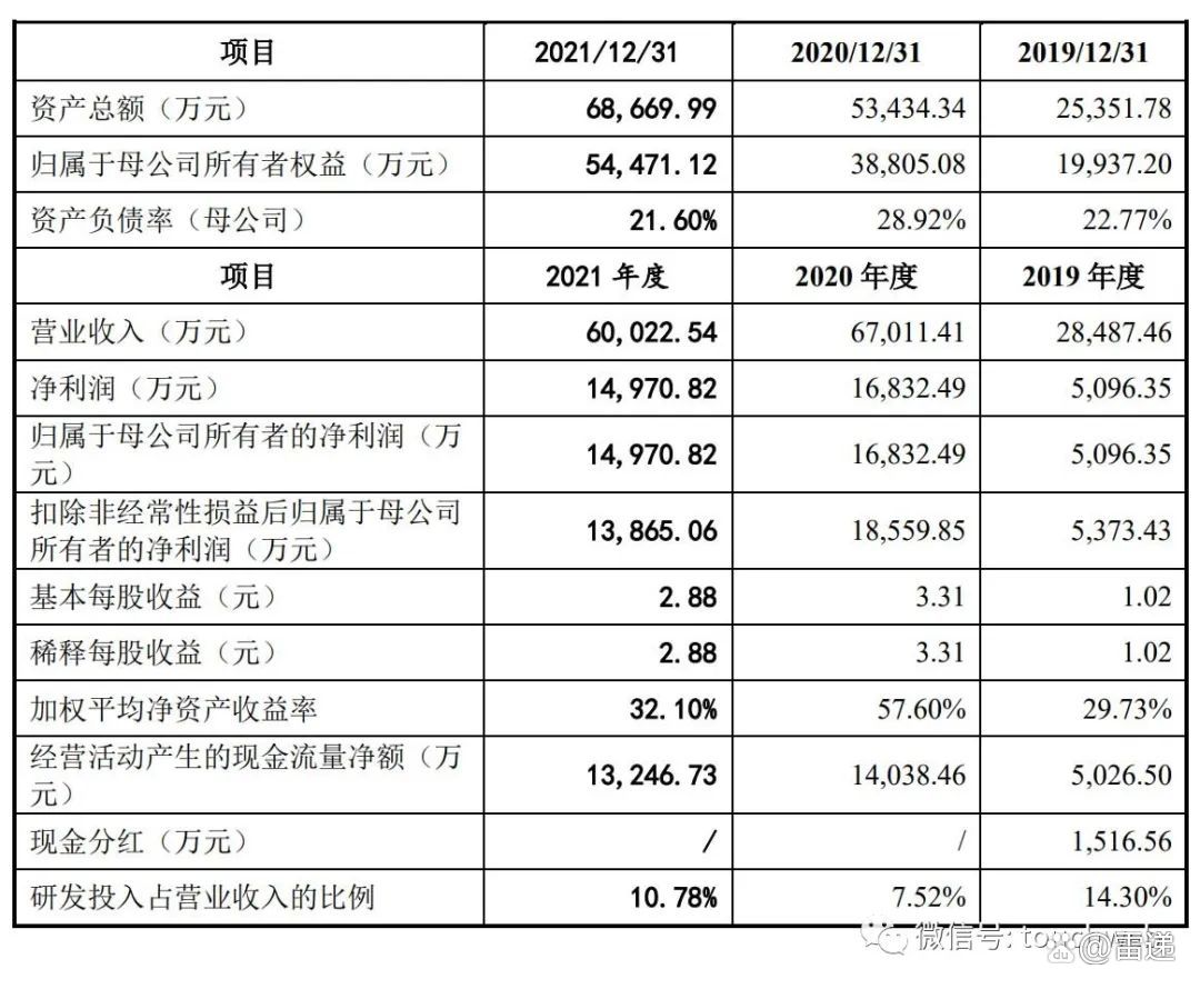 招股书显示,维海德技术2019年、2020年、2021年营收分别为2.85亿元、6.7亿元、6亿元;净利分别为5096万元、1.68亿元、1.5亿元。