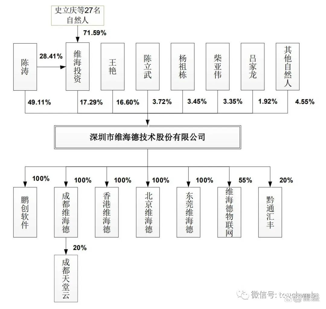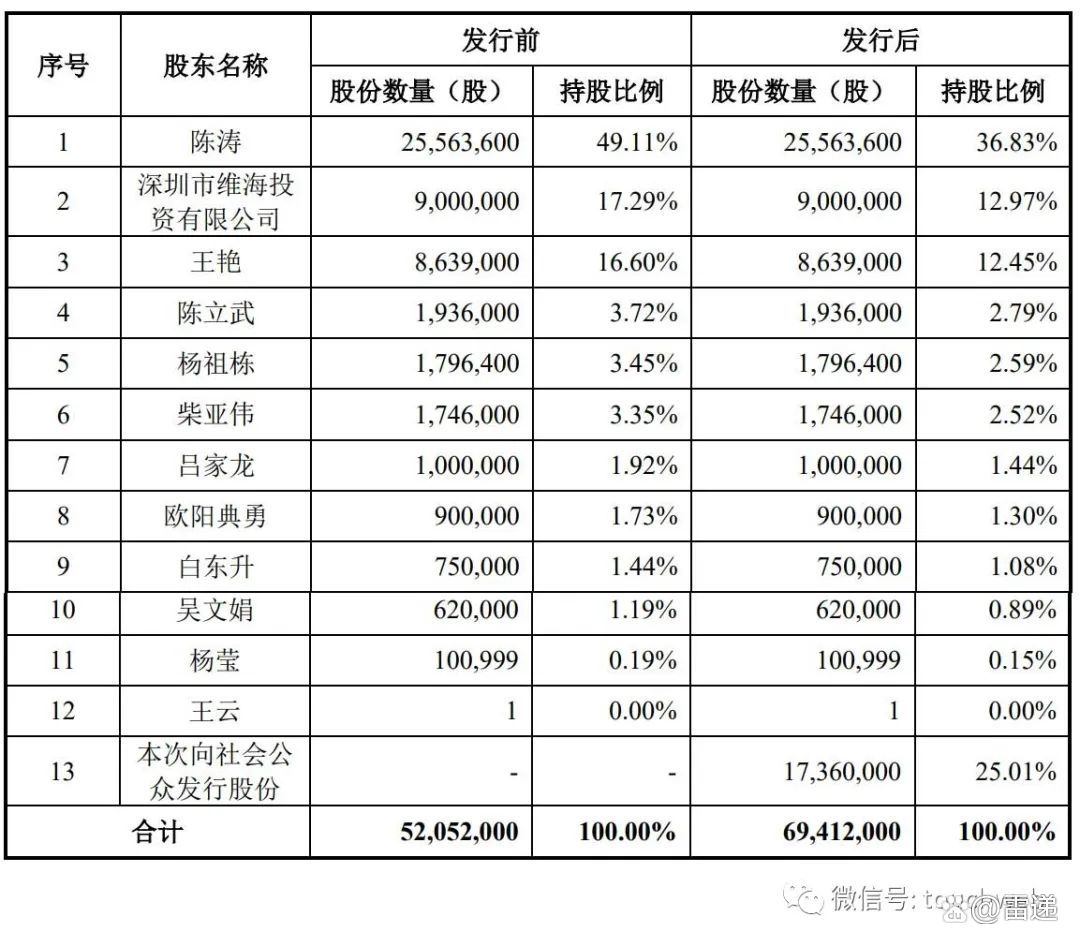 其中,陈涛持股为36.83%,深圳市维海投资有限公司持股为12.97%,王艳持股为12.45%,陈立武持股为2.79%,杨祖栋持股为2.59%,柴亚伟持股为2.52%,吕家龙持股为1.44%。