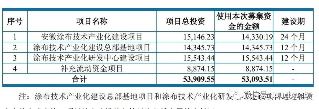 曼恩斯特原计划募资5.3亿,其中,1.43亿用于安徽涂布技术产业化建设项目,1.43亿元用于涂布技术产业化建设总部基地项目,1.55亿元用于涂布技术产业化研发中心建设项目,8874万元用于补充流动资金项目。
