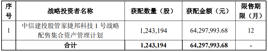格隆汇9月13日丨捷邦科技(301326.SZ)公布首次公开发行股票并在创业板上市发行结果公告,此次发行战略配售结果如下: