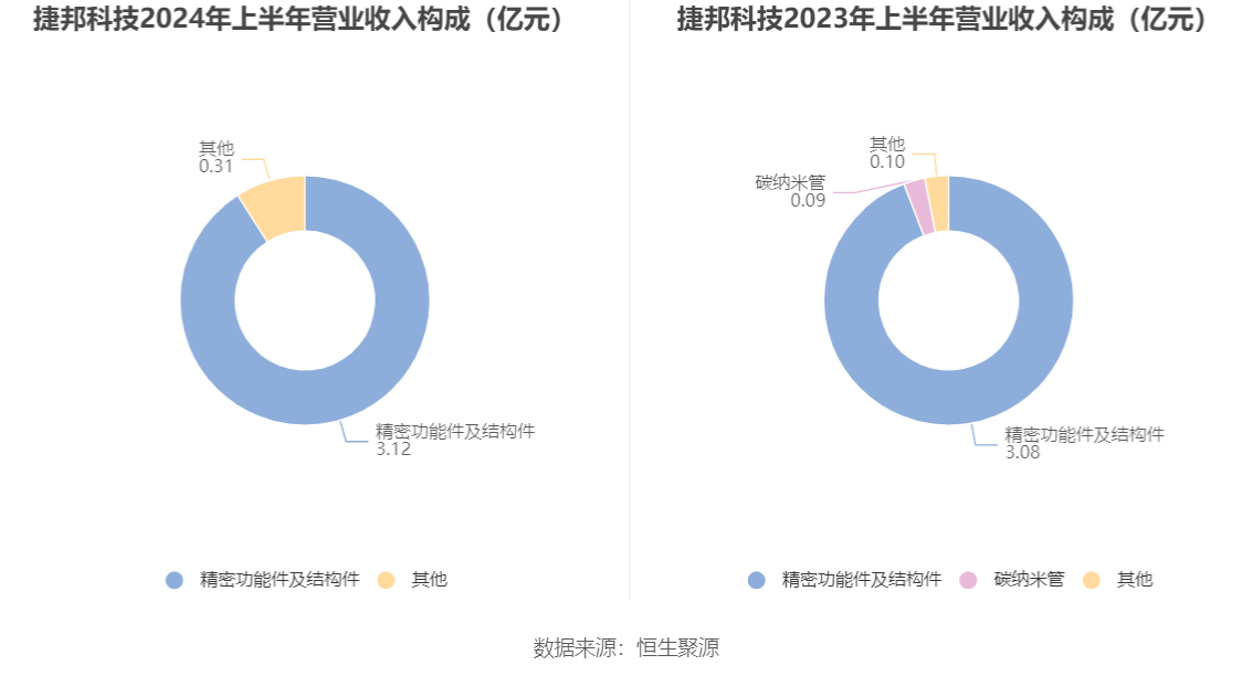 分产品来看,2024年上半年公司主营业务中,精密功能件及结构件收入3.12亿元,同比增长1.15%,占营业收入的90.82%。
