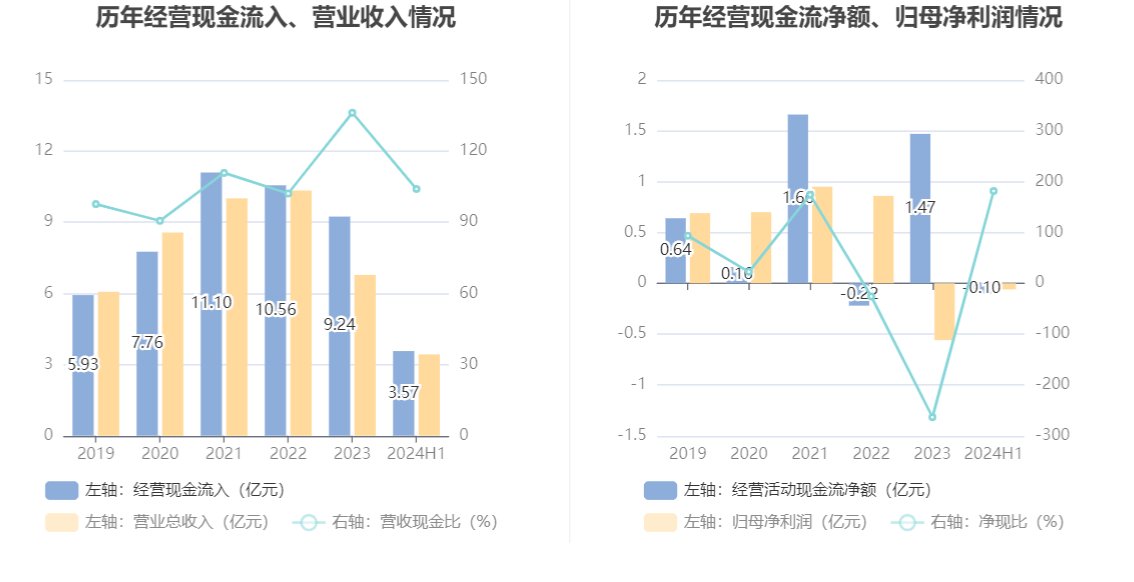 2024年上半年,公司营业收入现金比为104.04%。