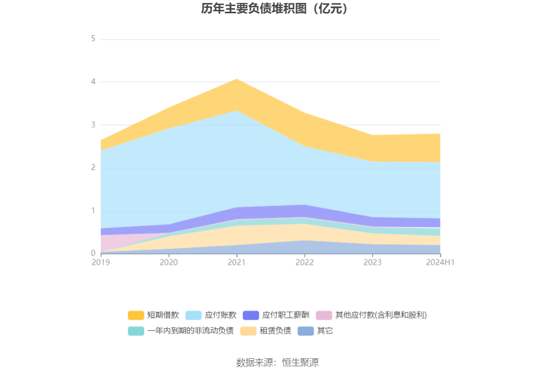负债重大变化方面,截至2024年上半年末,公司租赁负债较上年末减少19.02%,占公司总资产比重下降0.32个百分点;一年内到期的非流动负债较上年末增加28.65%,占公司总资产比重上升0.24个百分点;短期借款较上年末增加6.30%,占公司总资产比重上升0.21个百分点;合同负债较上年末减少93.40%,占公司总资产比重下降0.16个百分点。