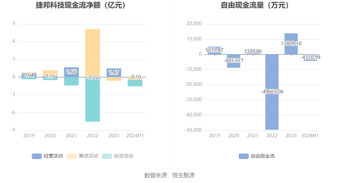进一步统计发现,2024年上半年公司自由现金流为-4310.99万元,上年同期为6849.75万元。