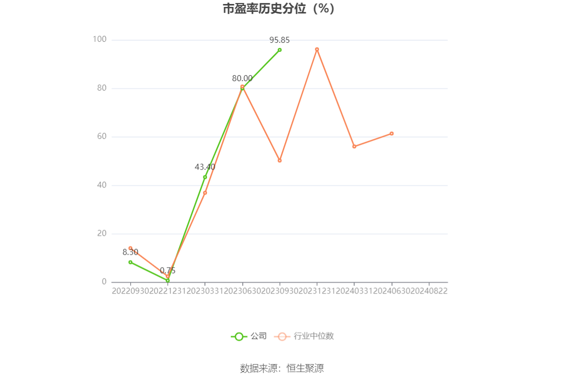 市盈率为负时,不显示当期分位数,会导致折线图中断。