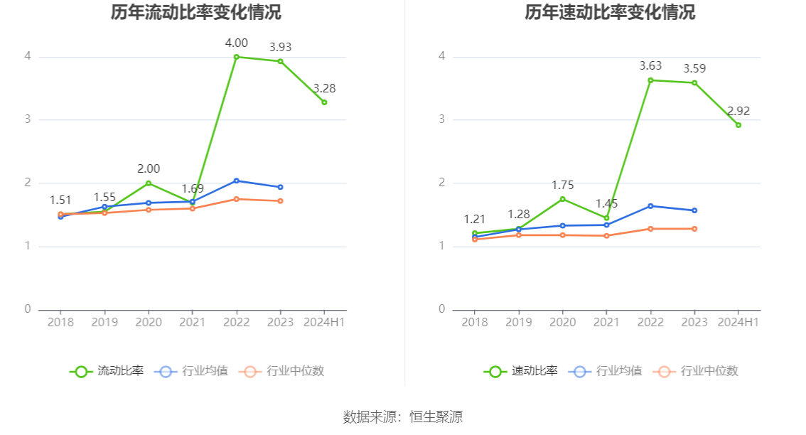 2024年上半年,公司流动比率为3.28,速动比率为2.92。
