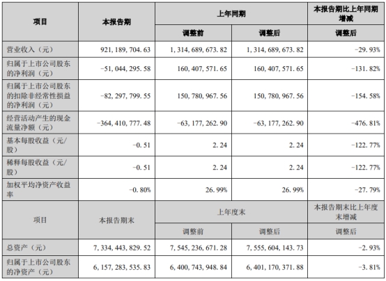 华宝新能(301327.SZ)近日披露2023年半年度报告,公司2023年上半年营业收入为9.21亿元,同比下降29.93%;归属于上市公司股东的净利润为-5104.43万元,上年同期为1.60亿元;归属于上市公司股东的扣除非经常性损益的净利润为-8229.78万元,上年同期为1.51亿元;经营活动产生的现金流量净额为-3.64亿元,上年同期为-6317.73万元。