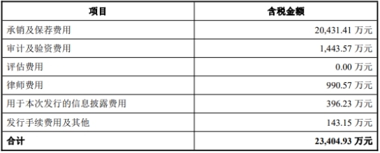华宝新能本次新股发行费用总额为23,404.93万元,其中保荐机构华泰联合证券有限责任公司获得承销及保荐费用20,431.41万元。