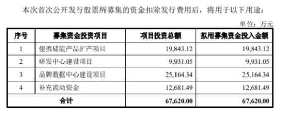 华宝新能2022年首次公开发行新股募集资金总额为582,864.57万元,扣除发行费用后募集资金净额559,459.64万元。华宝新能最终募集资金净额较原计划多491839.64万元。华宝新能于2022年9月13日披露的招股说明书显示,公司拟募集资金67,620.00万元,分别用于便携储能产品扩产项目、研发中心建设项目、品牌数据中心建设项目、补充流动资金。