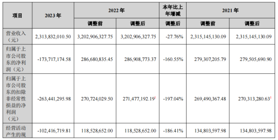 华宝新能的业绩在上市次年遭遇变脸。近日,华宝新能发布2023年报。2023年,公司实现营收23.14亿元,同比下降27.76%;归母净利润亏损1.74亿元,同比下降160.55%;扣非净利润亏损2.63亿元,同比下滑197.04%;经营活动产生的现金流量净额为-1.02亿元,同比下滑186.41%。