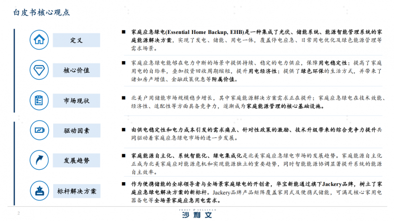 沙利文是全球顶尖的市场咨询与增长战略机构。其发布的《北美家庭应急绿电行业白皮书》,基于北美市场在家庭应急绿电领域的发展态势与需求,勾勒出碳中和目标下家庭能源领域的创新动态,为行业生态参与者把握战略机遇期提供关键决策工具。